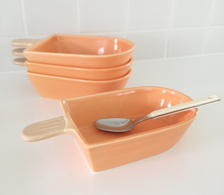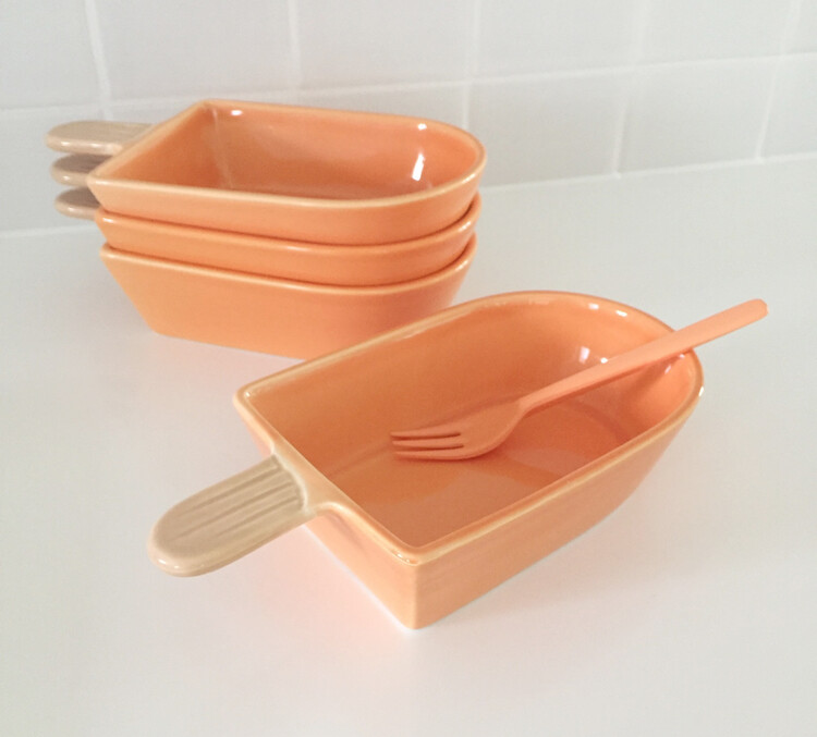 오렌지톤의 사랑스러운 컬러감으로 이루어진 빈티지 디저트 보울을 소개해드릴게요. 귀여운 아이스크림의 쉐잎으로 손잡이 부분도 달려있어 편하게 사용하실수 있는 제품이에요. 넉넉한 사이즈로 씨리얼 보울로 사용하셔도 너무 예쁘고 디저트, 아이스크림 등 다양하게 사용하기에 너무 좋은 제품이에요. 미사용 새제품급의 컨디션으로 입고되어 이번기회에 꼬옥 소장하시길 추천드릴게요!