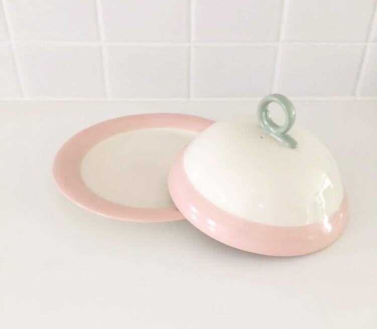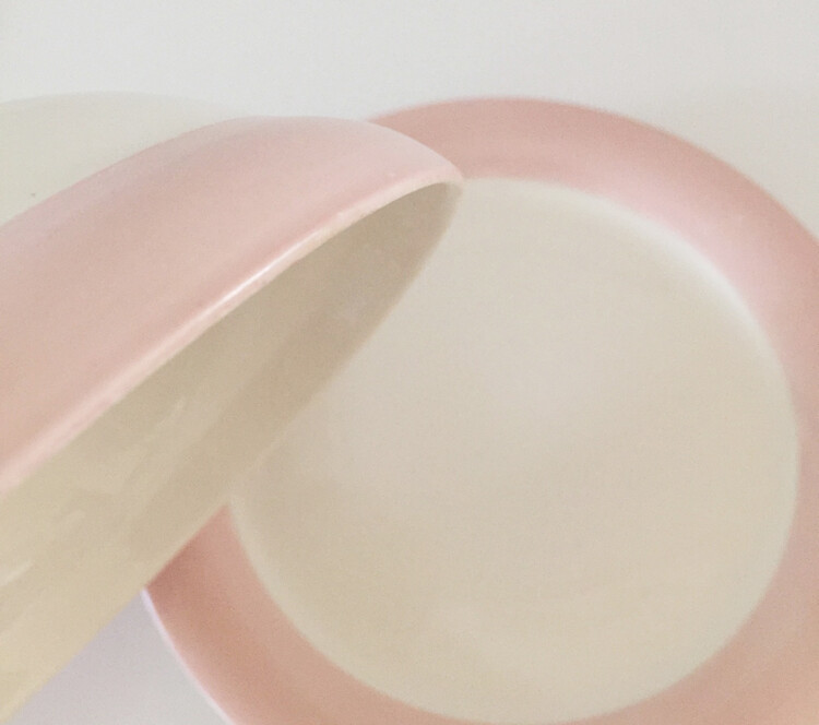 1960년대에 미국 호머로린에서 생산된 빈티지한 무드의 딸기우유빛 색감이 너무나 사랑스러운 버터디쉬를 소개해드릴게요. 이 제품은 특히나 제가 너무나 애정하는 라인으로 실물컬러와 쉐입이 정말 너무너무 예쁜 제품이에요! 호머로린 제품중에서도 쉽게 만나보기 힘든 레어빈티지 라인으로 플레이트만 단독으로 사용하셔도 좋은 제품이에요. 플레이트는 특히 세월감이 느껴지는 바닥닥면의 미세한 스크래치와 밴드부분의 미세 프린팅소실이 있는 컨디션이지만 그 자체로 사랑스러운 제품이라 빈티지한 무드를 이해주시는분께서 꼬옥 소장하셔서 사랑스러운 홈카페를 연출해보시길 추천해드릴게요 :)