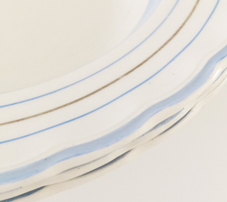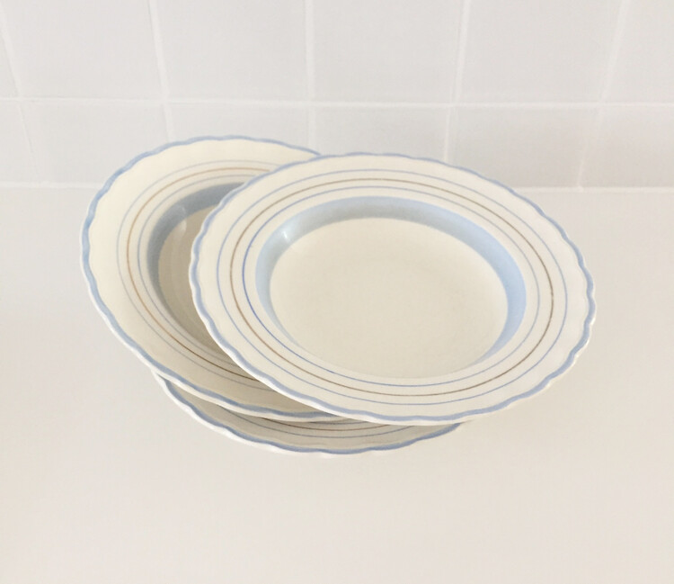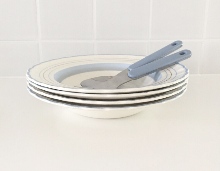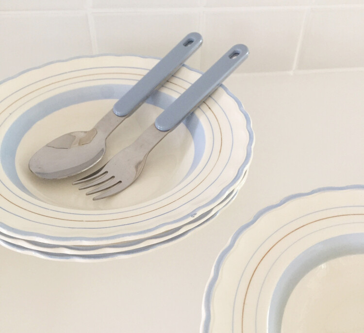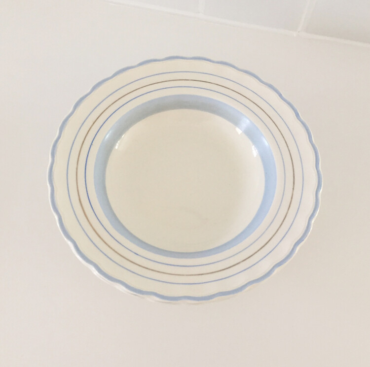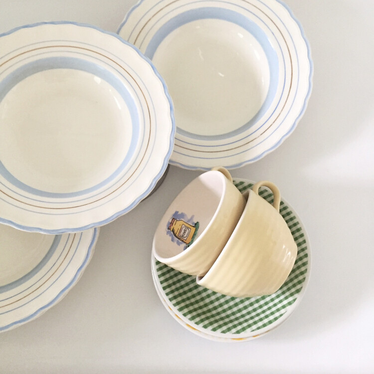빈티지한 무드의 하늘색톤이 너무 사랑스러운 파스타보울&플레이트를 소개해드릴게요! 영국에서 생산된 제품으로 물결모양의 테두리쉐입과 하늘색톤으로 이루어진 라인들이 너무 예쁜 제품이에요. 제가 특히나 더 애정하는 제품으로 평소에 빈티지한 사용감이 있는 컨디션의 제품도 괜찮으신 분들께 꼬옥 추천드릴게요! 맑은톤의 하늘색 컬러가 사랑스러운 빈티지무드를 만들어줄거에요 :)