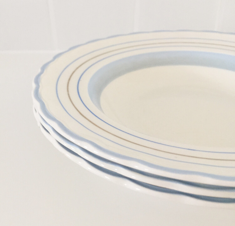 Vintage skyblue band pasta bowl