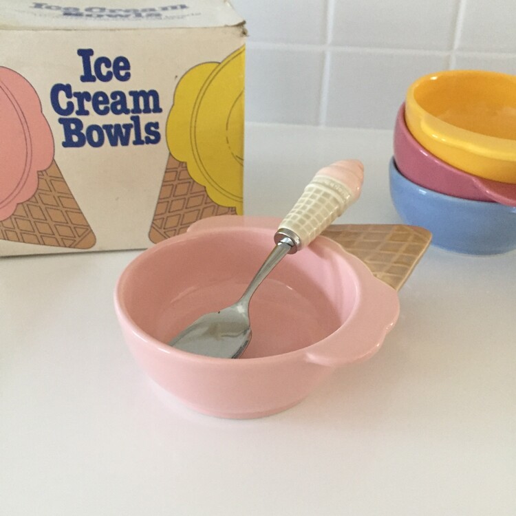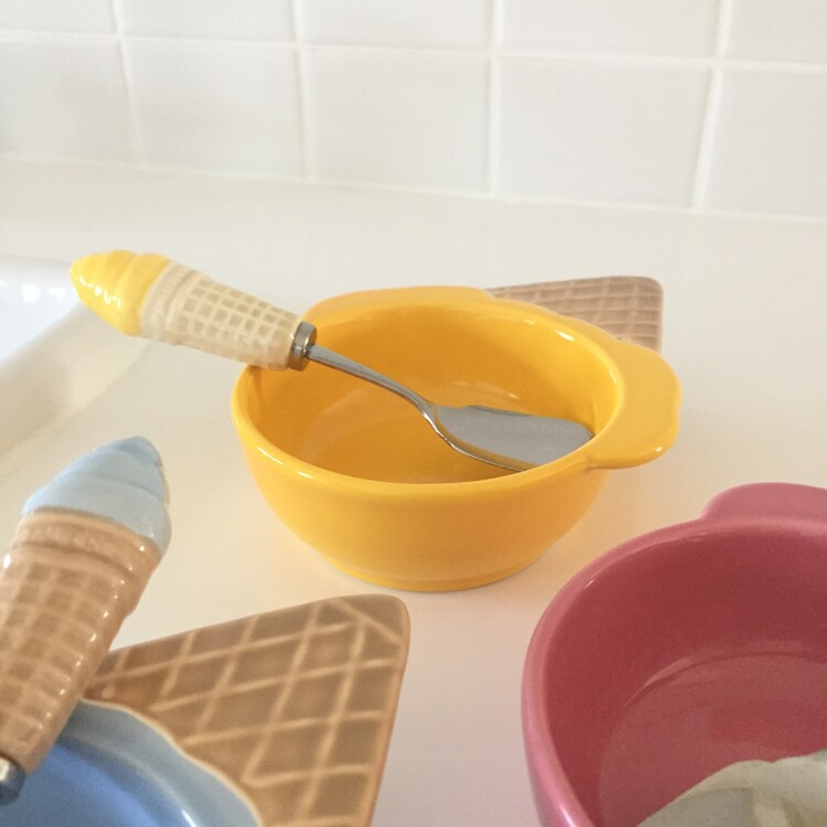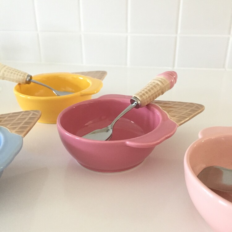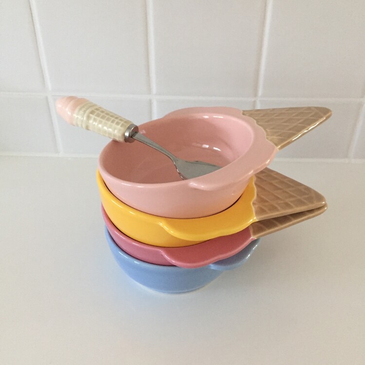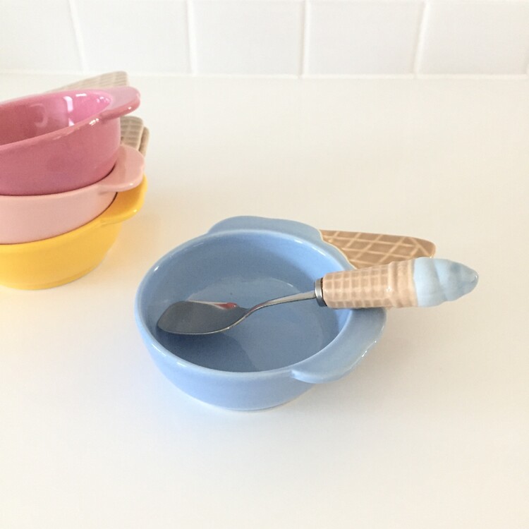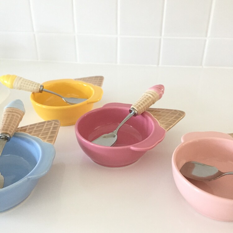 너무나 귀엽고 사랑스러운 아이스크림 쉐입의 디저트 보울&스푼 세트를 소개해드릴게요. 앙증맞고 귀여운 모양의 보울과 콘 아이스크림 모양의 스푼이 너무 예쁜 제품이에요! 아이스크림 또는 요거트, 디저트를 담아내기에 너무 좋을것 같은 사이즈로 모두 깨끗한 컨디션으로 입고되었어요. 이번기회에 꼬옥 소장하셔서 사랑스러운 빈티지 홈카페를 연출해보시기 바랄게요 :)
