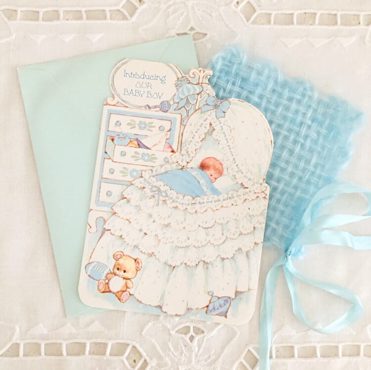 너무나 애정하는 사랑스럽고 귀여운 빈티지무드가 가득한 베이비카드를 소개해드릴게요. 따뜻하고 포근한 느낌의 아기침대와 수납장이 사랑스러운 베이비블루 컬러와 만나 너무나도 예쁜 무드가 되었어요. 내지에 작성된 내용이없는 깨끗한 미사용 새제품으로 카드&봉투가 한세트인 제품이에요. 이번기회에 꼬옥 소장하셔서 사랑스러운 빈티지무드를 연출해보시길 추천드릴게요 :)