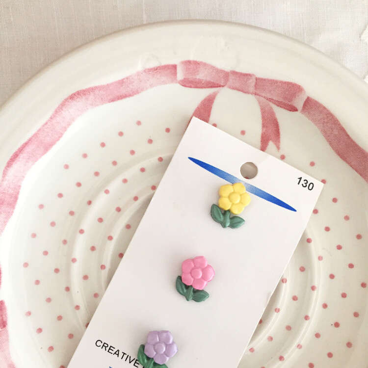샵슬이 너무나 애정하는 사랑스러움 가득 담긴 플로럴 단추를 소개해드릴게요 ! 빈티지 단추들은 소장하고 있으면 실사용하기에도 너무 좋지만 사진처럼 다양한 소품들과 함께 장식용으로 사용해도 너무나 귀엽고 예쁜 아이템이에요. 이 디자인은 특히나 빈티지 단추에서도 쉽게 만나보기 힘든 귀엽고 사랑스러운 플로럴 타입으로 3가지 컬러가 너무나 사랑스러운 색감이에요. 이번기회에 꼬옥 소장해보시길 추천해드릴게요 :)