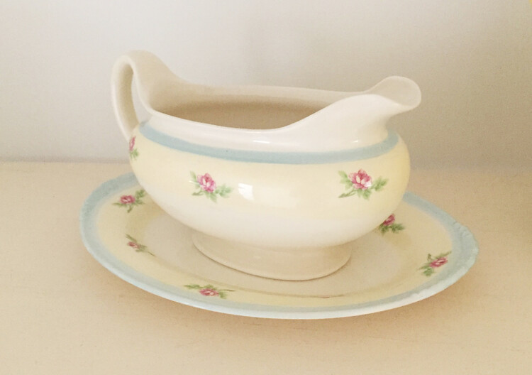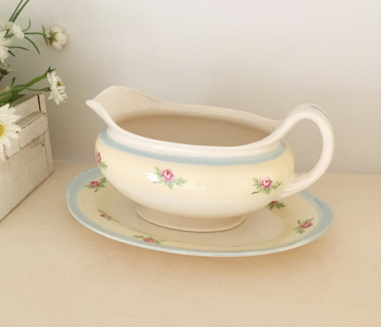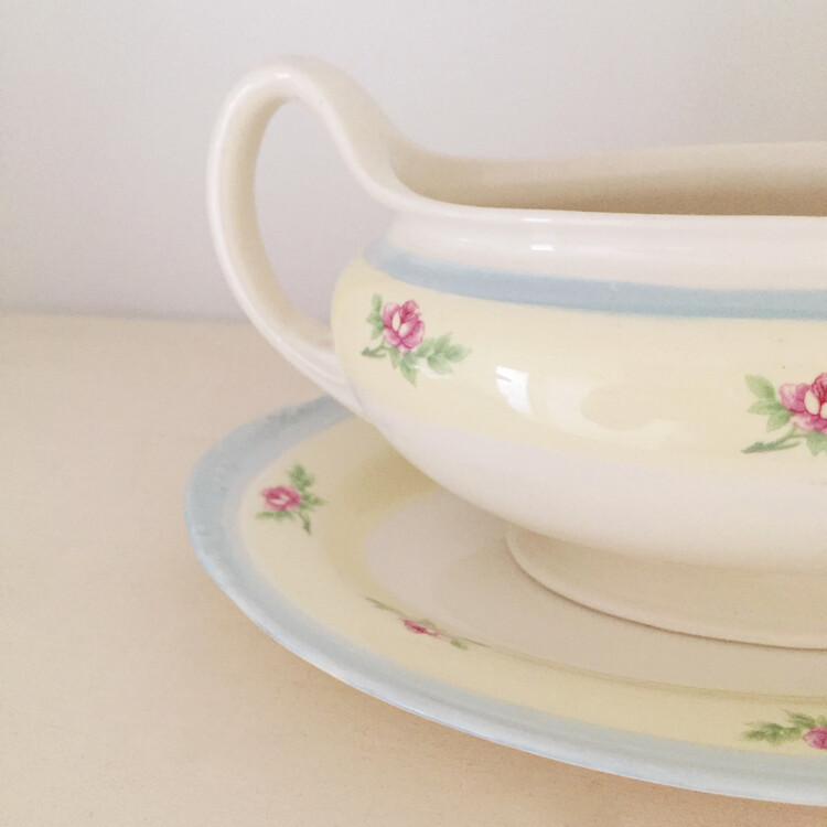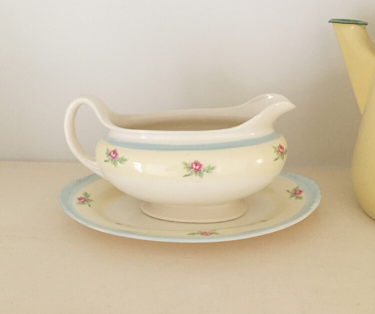 Vintage yellow floral gravy boat&saucer