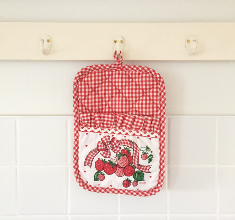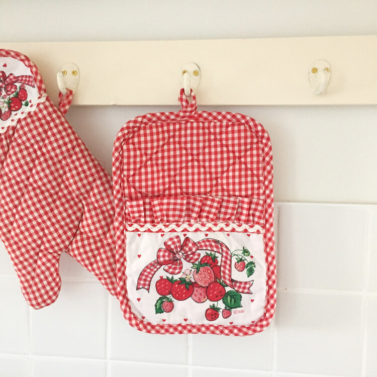 샵슬이 너무나도 애정하는 사랑스러운 빈티지무드의 딸기패턴이 새겨진 패브릭시리즈를 소개해드릴게요! 빈티지무드에 너무나 잘어우러지는 예쁜 레드체크패턴과 사랑스러운 딸기가 만나 실물이 정말 더더 예쁜 패턴이에요. 냄비받침은 앞면주머니에 소품이나 레시피카드등을 꽂아서 사용하는 등 활용도가 많은 제품이에요. 깨끗한 컨디션의 미사용제품으로 입고되어 이번 기회에 꼬옥 소장하셔서 사랑스러운 빈티지무드를 연출해보시길 추천해드릴게요 :)