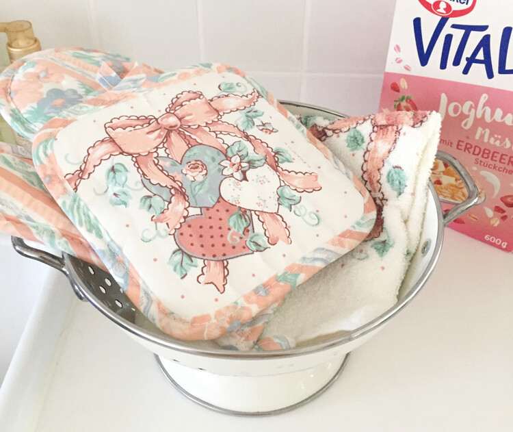 샵슬이 너무나도 애정하는 사랑스러운 빈티지무드의 타월, 냄비받침, 오븐장갑 세트를 소개해드릴게요. 너무나 사랑스럽고 화사한 코랄색감의 컬러와 사랑스러운 리본, 플로럴, 하트패턴이 예쁘게 새겨져있는 디자인이에요. 2가지타입의 타월과 냄비받침, 오븐장갑, 총 4가지 타입이 모두 세트인 제품으로 각각 다양하게 활용하기에 너무 너무 좋은 아이템이에요. 이번 기회에 꼬옥 소장하셔서 사랑스러운 빈티지무드를 연출해보시길 추천해드릴게요 :)