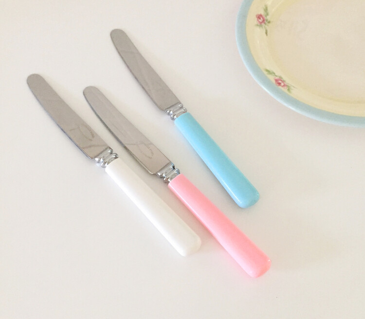 샵슬이 너무나도 애정하는 사랑스러운 컬러감의 버터나이프를 소개해드릴게요. 영국 셰필드에서 생산된 제품으로 사랑스러운 빈티지무드의 크리미한 컬러감이 너무나도 예쁜 제품이에요. 3가지 컬러 모두 어떤 플레이트와도 잘 어우러져 포근한무드의 빈티지 테이블을 애정해주시는분께 꼬옥 추천드리고 싶은 제품이에요. 이번 기회에 꼬옥 소장하셔서 사랑스러운 홈카페를 연출해보시길 추천해드릴게요 :)
