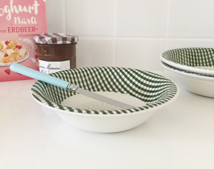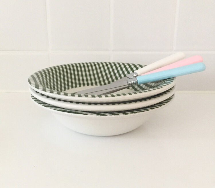 Vintage green check bowl