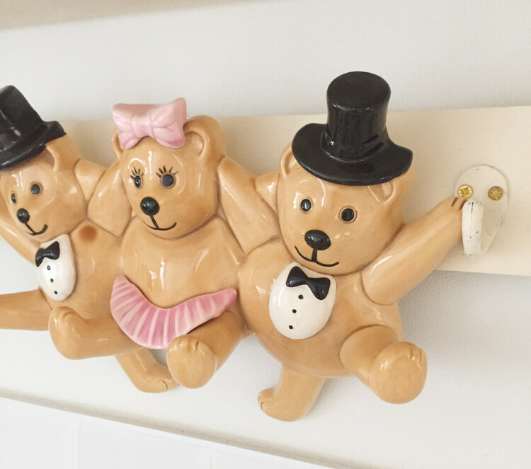 너무나 사랑스러운 쉐입의 빈티지 곰돌이 후크를 소개해드릴게요! 귀엽고 사랑스러움이 가득가득한 색감과 쉐입으로 3마리의 곰돌이가 포인트인 아이에요. 토실토실 귀여운 다리부분에 가벼운 소품이나 마스크등 여러가지를 걸어두고 사용하기에 너무 좋은 제품이에요. 특히나 쉽게 만나보기 힘든 레어한 제품이라 이번기회에 꼬옥 소장하시길 추천해드릴게요 :)