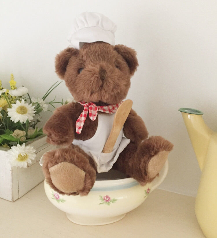 실물을 보자마자 정말 ! 한눈에 반해버린 ! 너무나 사랑스럽고 귀여운 셰프베어를 소개해드릴게요. 처음 보자마자 너무나 적당한 크기가 마음에 들었고 ! 목에 두른 빈티지한 레드체크 스카프와 앞치마에 넣어놓은 주걱이 너무너무 귀엽고 앙증맞은 포인트였어요. 주방에서 함께 지내기에도 너무 사랑스러운 아이가 될것같고 다른 소품들과 함께 장식해놓아도 너무 귀여울것 같아요. 이번 기회에 꼬옥 소장하셔서 오래도록 함께하시길 추천해드릴게요 :)