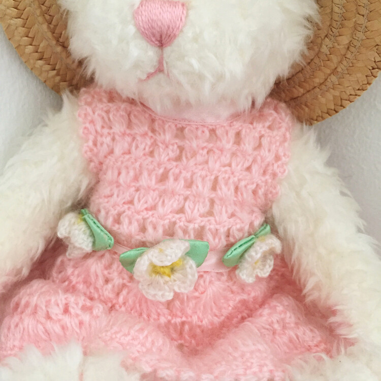너무나 사랑스러운 빈티지무드의 핑크 니트원피스를 입은 토끼인형을 소개해드릴게요! 보들보들한 소재의 사랑스러운 딸기우유색감의 니트 원피스에 화사한 데이지 플라워까지! 그리고 발바닥도 너무 사랑스러운 핑크컬러로 포인트가 들어가있어요! 쉽게 만나보기 힘든 시리즈의 토끼인형으로 이번기회에 꼬옥 소장하시길 추천드릴게요 :)