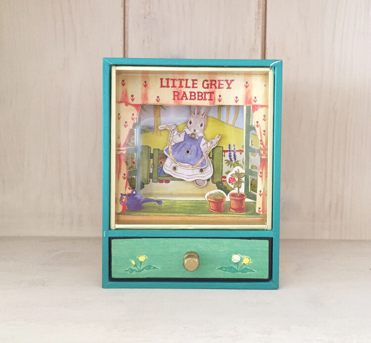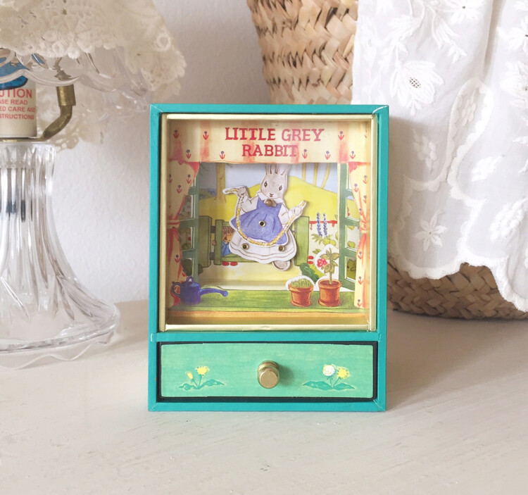 너무나 사랑스러운 빈티지무드의 토끼 오르골을 소개해드릴게요! 스케치로 슥슥 그린듯한 사랑스럽고 귀여운 드로잉이 너무나 예쁜 제품으로 뒷면에 레버를 작동하고 앞면의 서랍을 열면 오르골이 작동하는 제품이에요. 윗면 양옆면 모두 사랑스러운 그림이 그려져있는 제품으로 박스채 미사용 새제품급으로 구하기는 힘든 레어한 제품이라 이번기회에 꼭 소장하시길 추천드릴게요 :)
