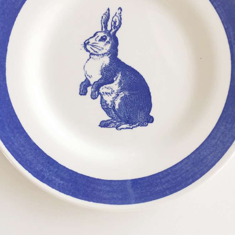 영국의 로얄스태포드에서 생산된 빈티지한 블루톤과 토끼패턴이 매력적인 플레이트를 소개해드립니다. 디테일하고 사랑스러운 토끼 드로잉이 새겨진 제품으로 톤다운된 블루밴드와 너무 조화롭게 에쁜 제품이에요. 샐러드 사이즈로는 특히나 쉽게 만나보기 힘든 레어한 제품으로 이번기회에 꼭 소장하시길 추천드릴게요 !