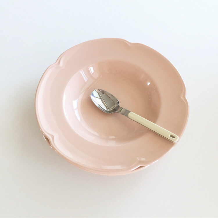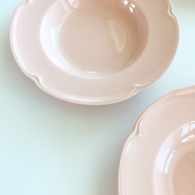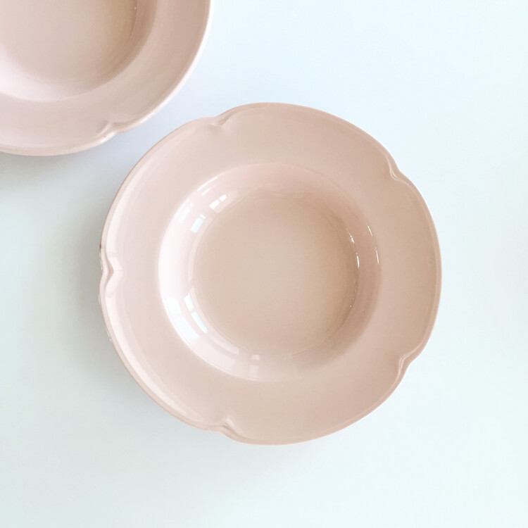 1950년대에 영국 존슨브라더스에서 생산된 고운 색감의 말린장미빛 컬러가 떠오르는 인디핑크톤의 로즈무드 보울&플레이트를 소개해드릴게요. 꽃잎을 연상시키는 아름답고 섬세한 테두리 쉐입이 우아한 느낌을 동시에 자아내는 제품으로 파스타 또는 샐러드 보울로 사용하거나 따뜻한 스프를 담아내어도 너무 예쁜 홈카페가 연출될것 같아요. 바닥면에 미세한 빛스크래치가 크게 눈에 띄지 않는 컨디션이라서 이번 기회에 꼬옥 소장하시길 추천해드릴게요 :)